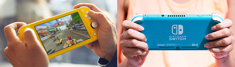 「Nintendo Switch Lite」はコントローラーを本体と一体化させることで、小さく、軽く、持ち運びやすくなりました。携帯専用なのでテレビに画面を出力して遊ぶことはできませんが、携帯モードでプレイできるすべての「Nintendo Switch」ソフト(※)がお楽しみいただけます。外に持ち出して利用される機会が多い方や、1台のNintendo Switchを共有されているご家族、そして、すでにお持ちのNintendo Switchと合わせてマルチプレイでのゲーム体験を他のプレイヤーと楽しみたいとお考えの皆様におすすめです。